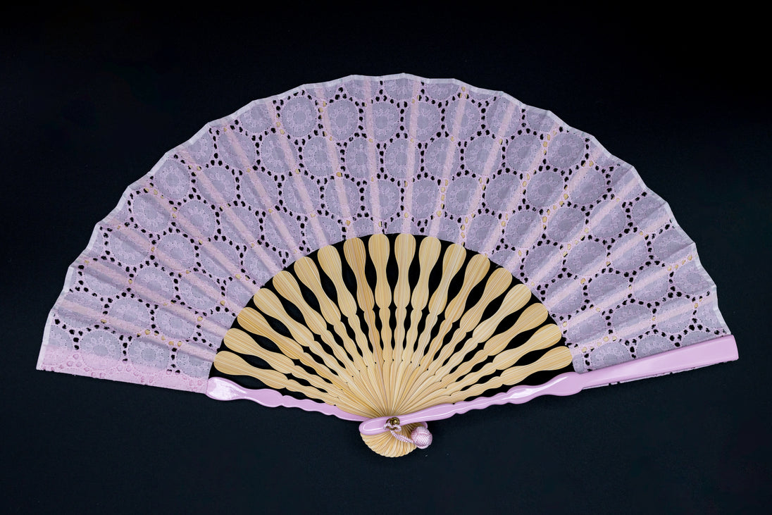 扇骨:竹(親塗り骨中白竹塗骨、中国) 扇面:布地(綿)  生産国:日本