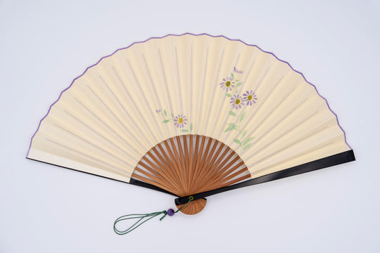 商品説明 丁子色の下地に手描きにて都忘れが描かれたかわいらしい扇子です。色分金が絵柄を引き立たせています。 商品詳細 手作りの為 写真と多少異なる場合もあります。ご了承の上ご購入下さいませ。 サイズ:6.5寸女性用サイズ(約19.5cm)扇骨:竹(親黒タキ中焼竹) 扇面:和紙(手描き) 生産国:日本通常価格 ¥6,050 -