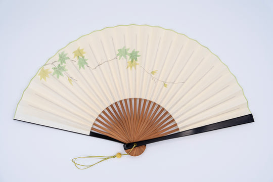 商品説明 丁子色の下地に手描きにて青楓が描かれたかわいらしい扇子です。色分金が絵柄を引き立たせています。 商品詳細 手作りの為 写真と多少異なる場合もあります。ご了承の上ご購入下さいませ。 サイズ:6.5寸女性用サイズ(約19.5cm)扇骨:竹(親黒タキ中焼竹) 扇面:和紙(手描き) 生産国:日本通常価格 ¥6,050 -