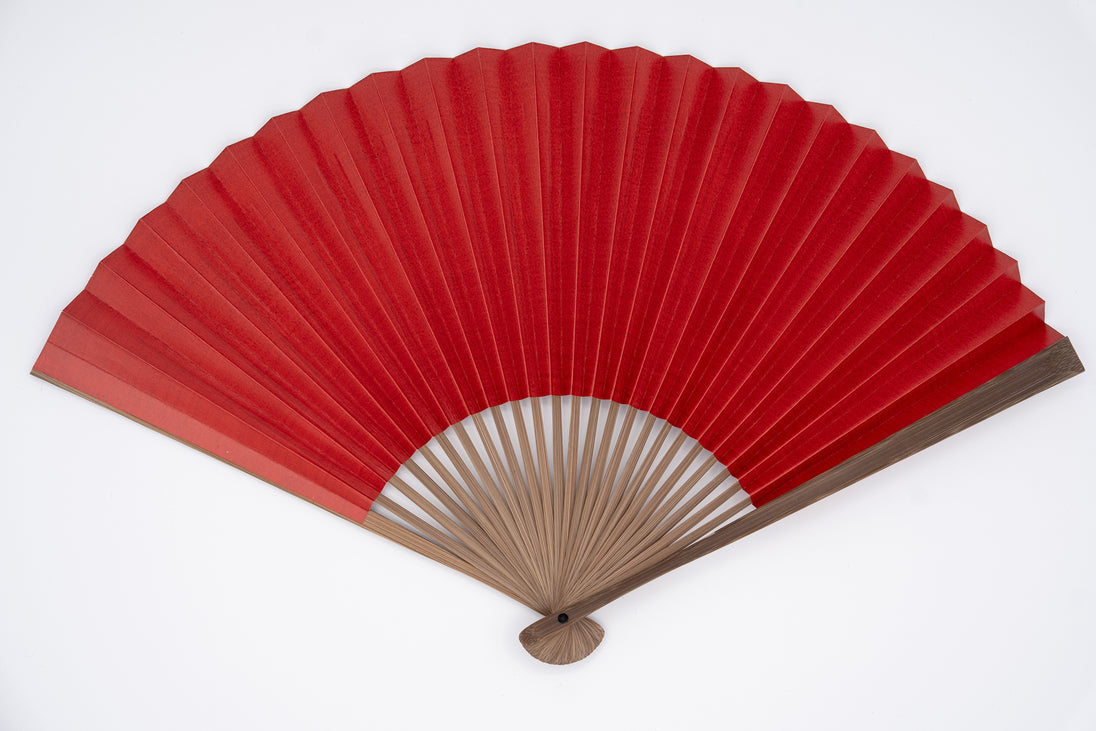 青い柿の汁をしぼり発酵させた柿渋を地紙に引いた扇です。 柿渋を引くことにより地紙の耐久性がアップします。 柿渋独特の臭いはしません。 扇面はお使い頂く間に柿渋の酸化により落ち着いた色へ変化します。