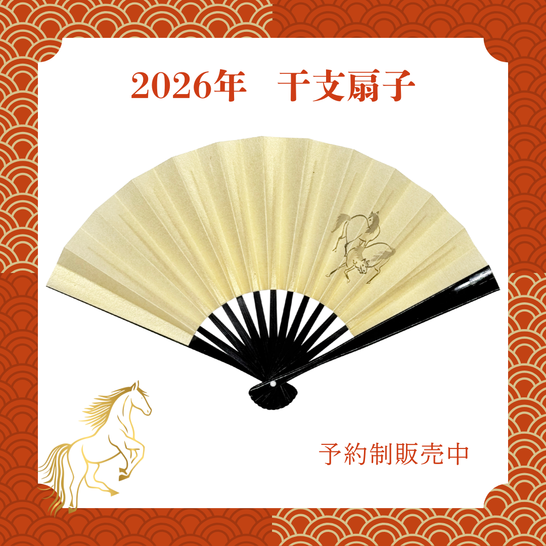 【2026年 干支】茶席扇 E 墨絵(5寸)